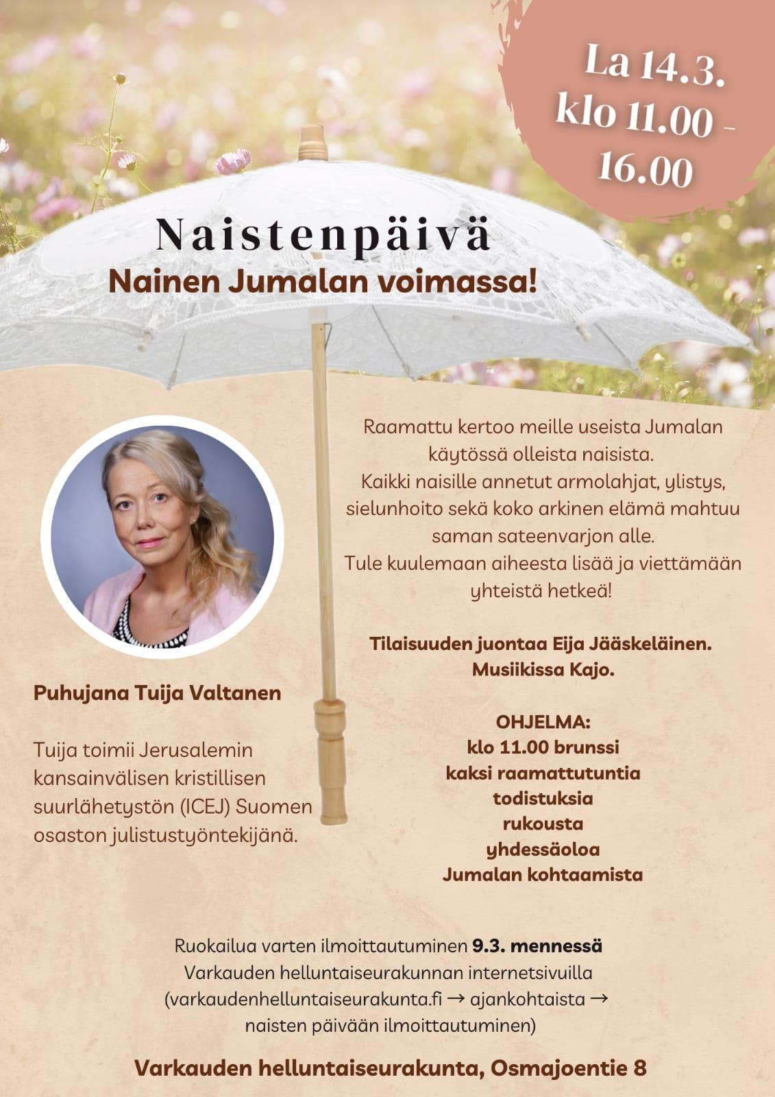 Naistenpäivä Varkauden Helluntaiseurakunnassa Osoite: Osmajoentie 8, 78200 VARKAUS