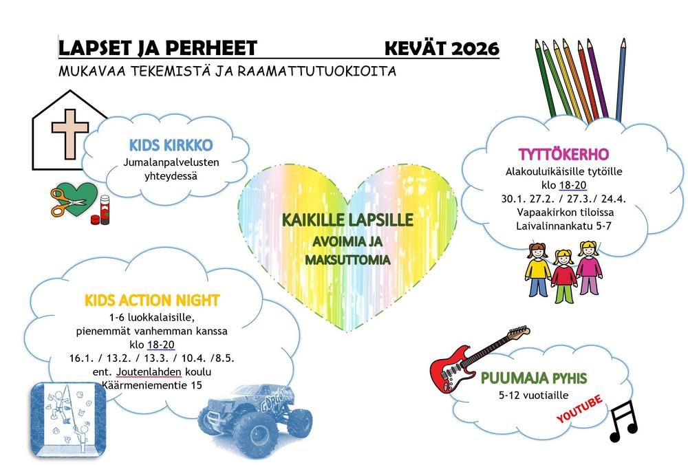 Lisätietoa toiminnasta voi kysellä lapsityöstä vastaavalta henkilöltä (Yhteystiedot).